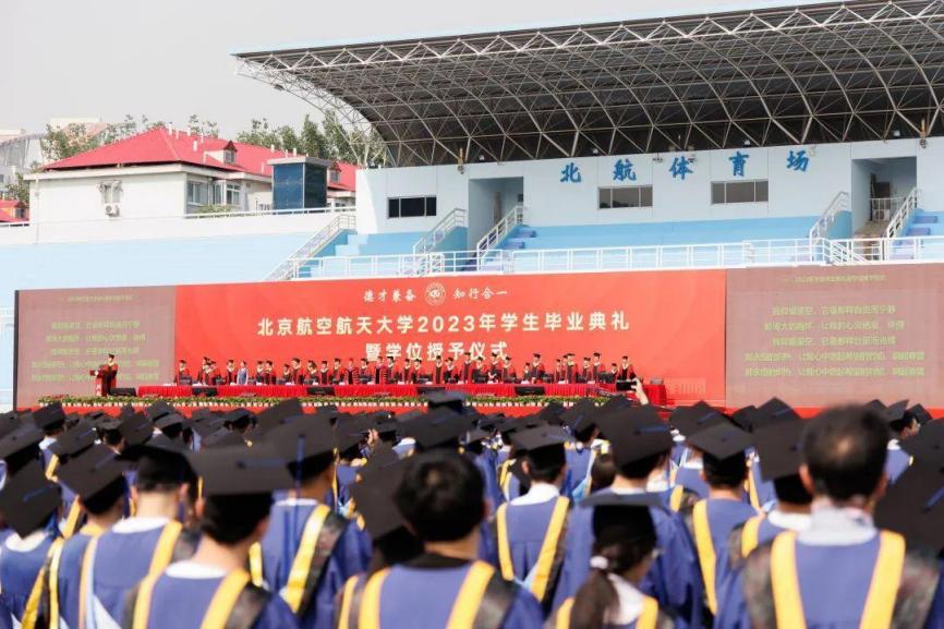 典礼结束后,举行2023届学位授予仪式。在熟悉的校歌旋律中,校院领导为在场的毕业生一一拨苏正冠,送上美好祝愿,临别寄语再嘱咐,开启未来新征程。一鸣从此始,相望青云端,优秀的北航毕业生们,将从新的起点起航,弘扬以“空天报国”为内核的北航精神,愿所有北航人眼有星辰大海,心有繁花似锦,奋进有为、不负青春,前程似锦,展翅翱翔。