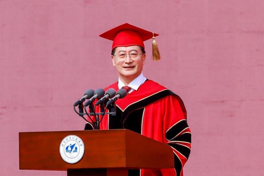 在热烈的掌声中,校长王云鹏院士发表了热情洋溢的讲话。他饱含深情地回顾了同学们与国同行、不负韶华的成长历程,肯定了同学们在各个领域的杰出表现,用满怀希望的话语向全体毕业生提出殷切期望,鼓励全体毕业生牢记“空天报国”使命,一路沐光、一路成长,以青春之我,担时代之任,行未有之事,建非常之功,在实现中国式现代化的伟大征程中,跑出当代青年的最好成绩。