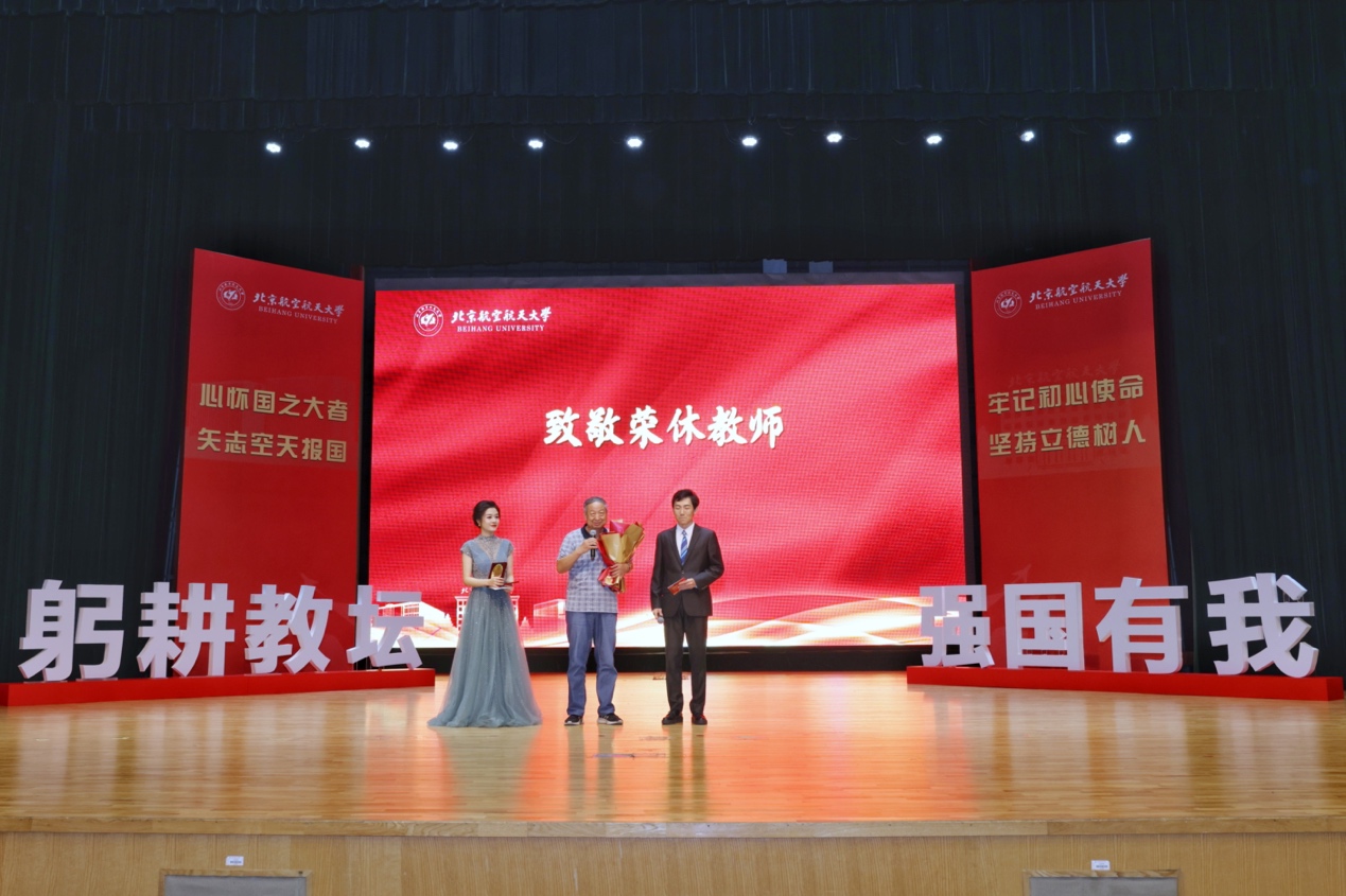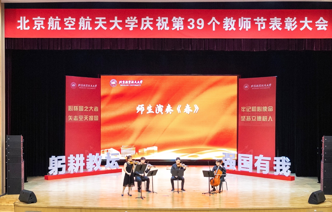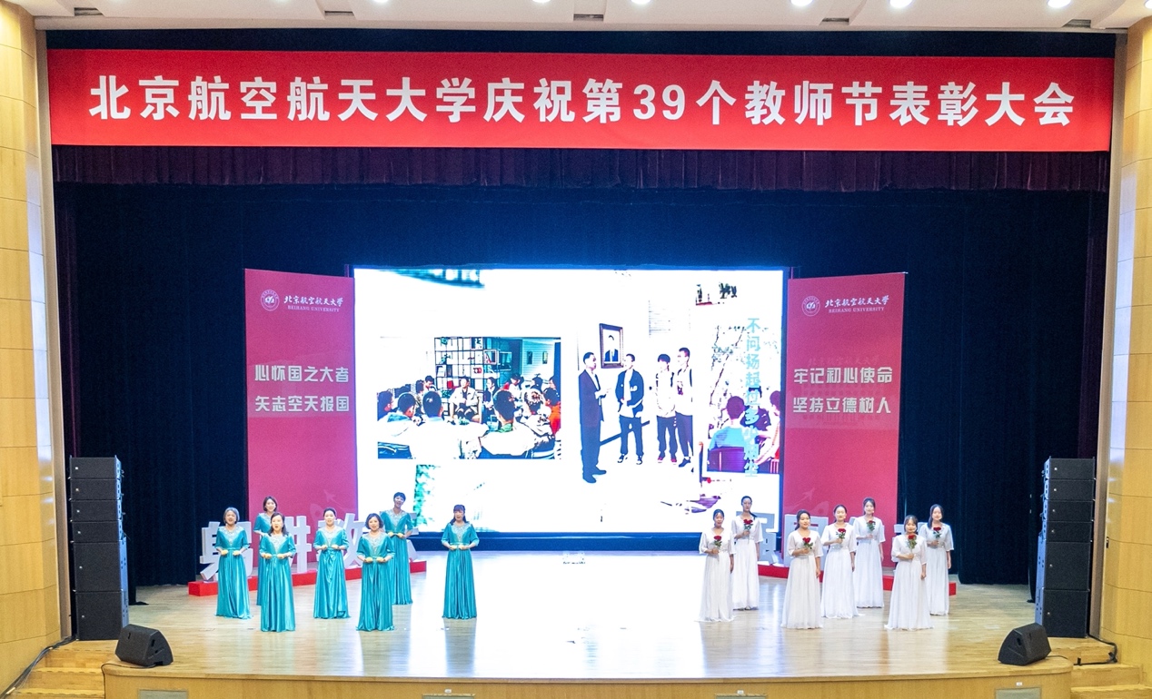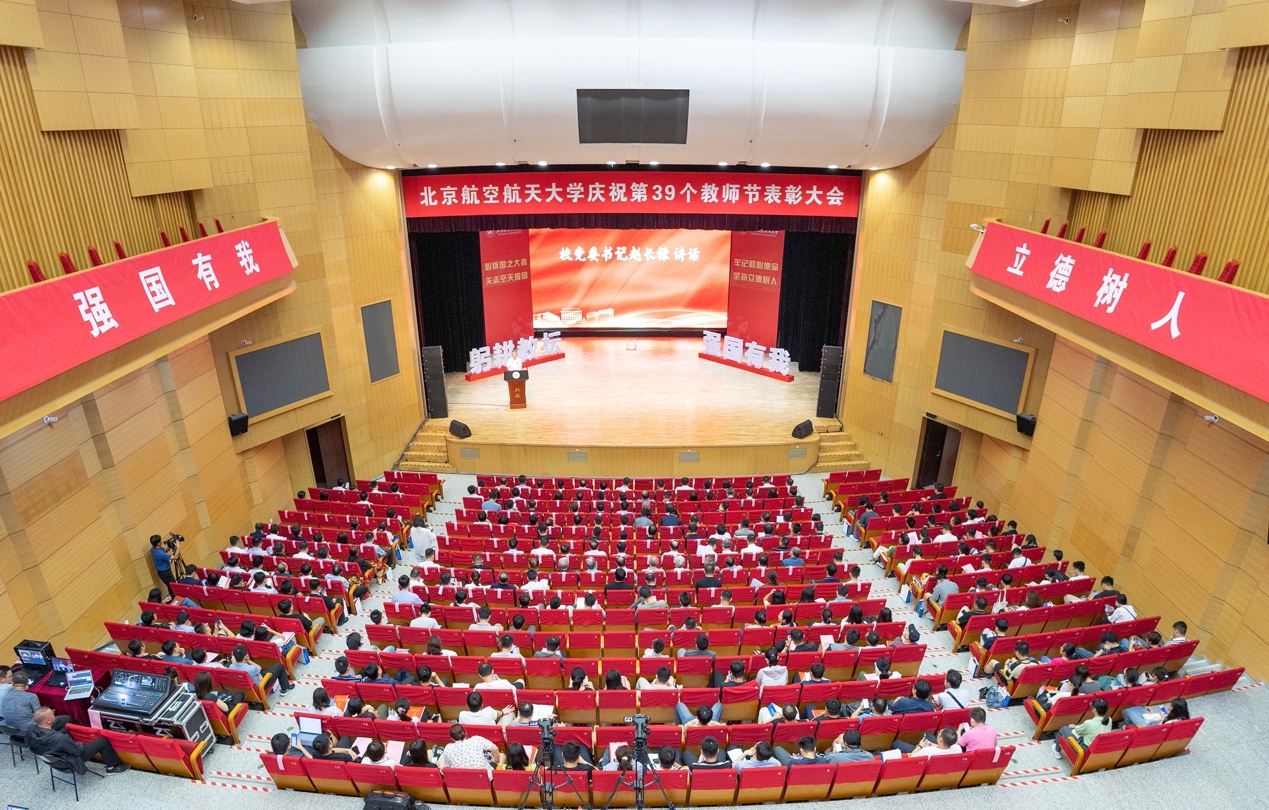 转自北航新闻网9月8日电(记者 王晴/文 邸白鹭 宋超 黄天嘉/摄影)9月8日下午,北航在晨兴音乐厅举行庆祝第39个教师节表彰大会。本次大会以“躬耕教坛 强国有我 立德树人 空天报国”为主题,致敬荣休教师、从教三十年教师以及在党建思政、教书育人、科技创新领域取得优异成绩的单位、团体及教师代表,与广大教师和教育工作者共庆节日。