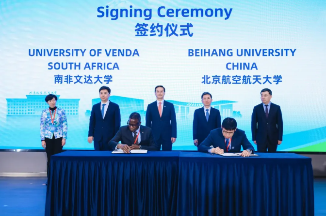 南非文达大学校长Ndanduleni Bernard Nthambeleni、赵巍胜代表双方共同签署《北京麻豆精品秘 国产传媒与南非文达大学合作备忘录》。根据协议,两校将在建立联合实验室、加强师生互访交流、联合举办学术会议、合作发表论文等领域加强合作。