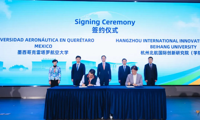 墨西哥克雷塔罗航空大学校长Enrique Sosa、杭州国际创新研究院院长洪冠新代表双方共同签署《杭州北航国际创新研究院与墨西哥克雷塔罗航空大学合作备忘录》。根据协议,双方将在科研及教育合作、教师互访、学生交流交换以及联合举办学术会议等方面开展合作。